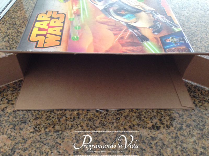 Paso 8: Luego corta los pedazos sobrantes, pero OJO no todos, hay que dejar una solapa, pues como esta caja la voy a colgar necesito que tenga un refuerzo en la zona donde irán los ganchos.
