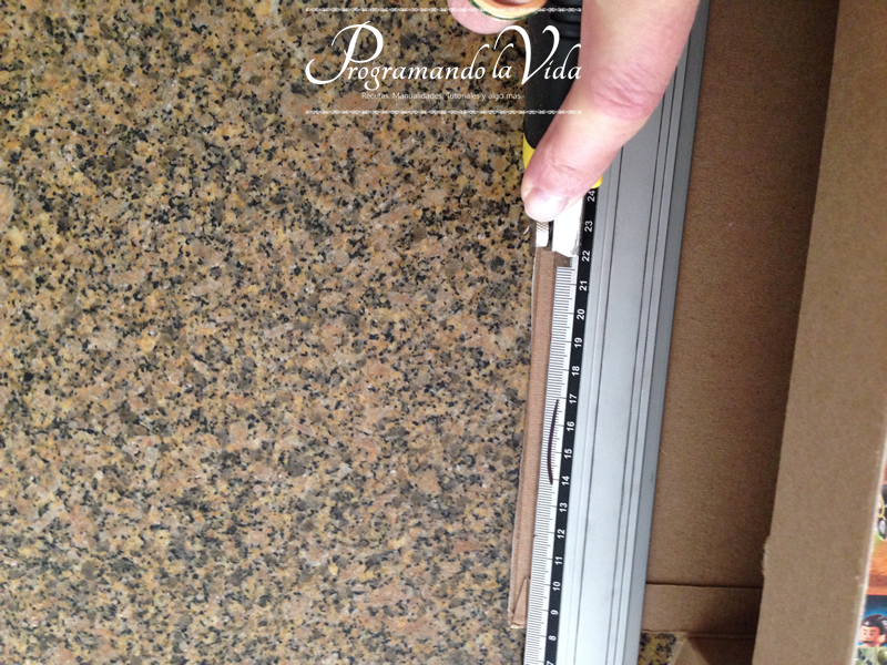 Paso 1: Mi primer paso es cortar ligeramente la caja pues es muy ancha, asi que mi la caja y marco a donde debo cortar.