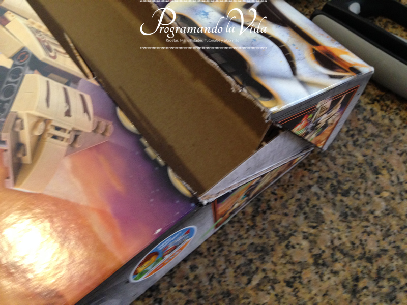 Cuando vi la caja del lego que mi hijo compro, pensé esta caja no la voy a desechar, la voy a reciclar. E así lo hice. Este Porta Papeles de Cartón Reciclado necesita además de la caja.