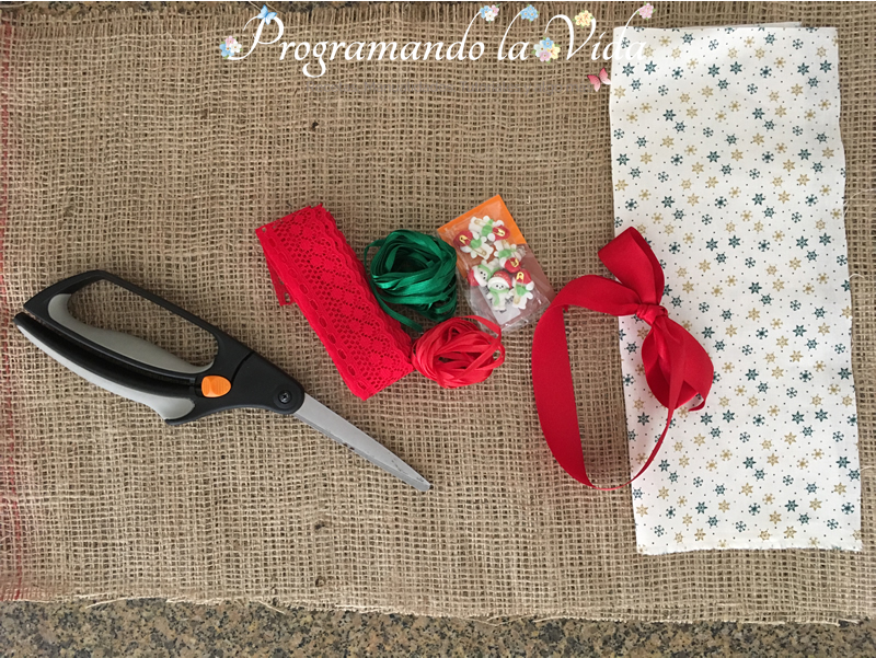 Materiales para la Bolsa Navideña de Regalo en Yute: