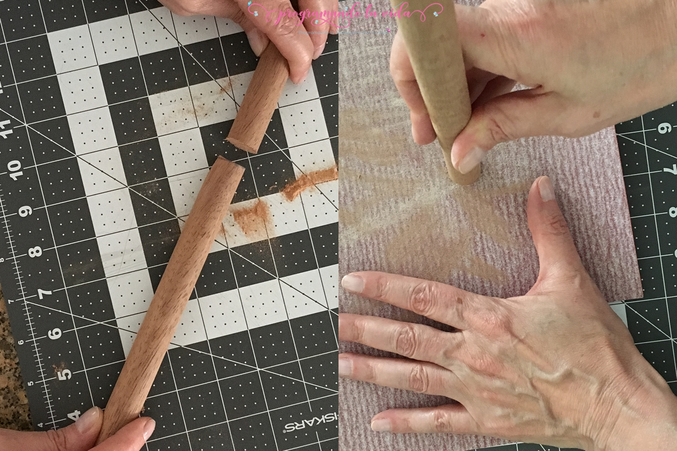 Los adornos son totalmente opcionales. Yo encontré unos tubitos de madera que me parecieron bellos, y para pintarlos utilicé tinte de madera.